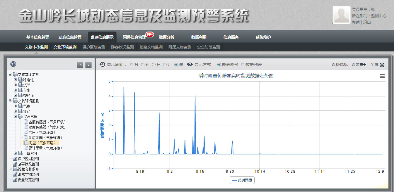 中国有50处世界遗产,数量为世界第二,世界遗产监测预警系统是一套用于保护遗产地以及文物的先进平台,是我在2013~2015年间参与的主要项目,该系统结合了物联网和Web平台,主要对中国的世界遗产地进行实时监测,我负责了所有的前端开发工作,我参与期间,该系统已经在周口店、长城、龙门石窟、天地之中等多个重要的世界遗产地部署,项目总额近2000万。