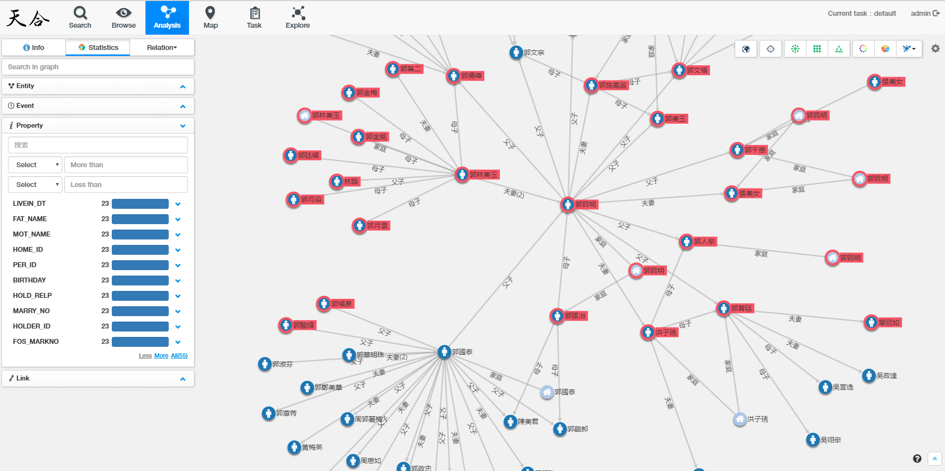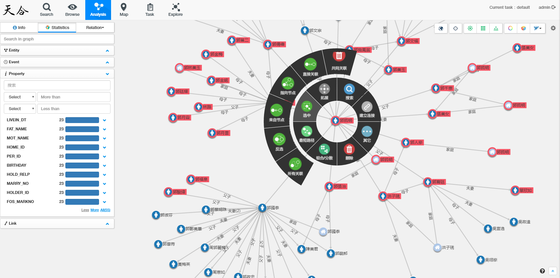 天合系统的基本理念很简单,基于OPL(Object-Property-Link)数据模型,将任何类型的已有数据库转化为图数据模型,进行关联分析。