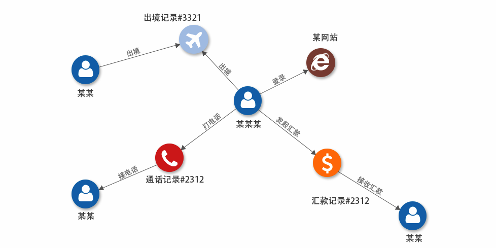 这些数据来自多个独立系统,有民航数据、电信数据、银行数据、网络数据,将这些数据结合后,我们不难发现出这些人之间的联系。